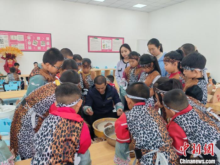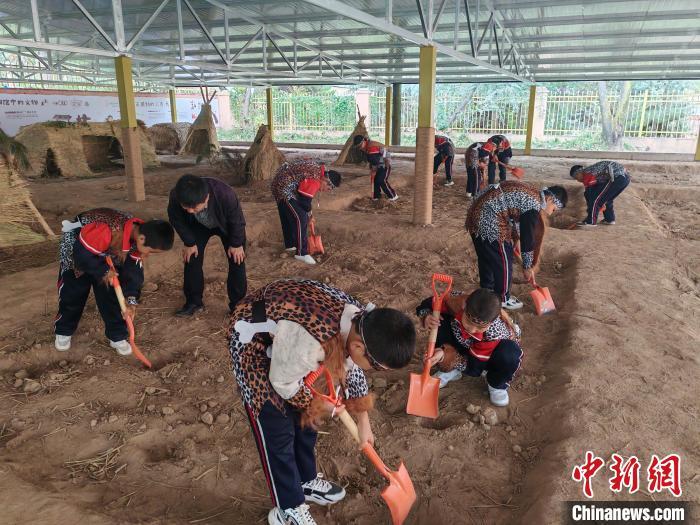 10月16日,大地灣博物館開展“史前工坊”特色主題社教活動,吸引大批孩子參與體驗?!?秦安縣委宣傳部供圖)