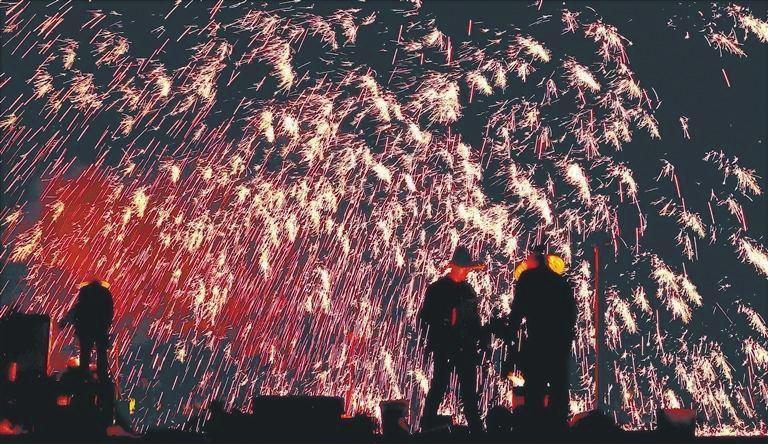 張掖打鐵花。 王將 攝