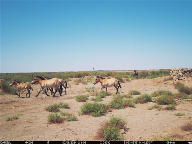 近日,甘肅敦煌西湖國家級(jí)自然保護(hù)區(qū)工作人員在保護(hù)區(qū)監(jiān)測(cè)數(shù)據(jù)中發(fā)現(xiàn)了令人驚嘆的一幕:普氏野馬與野駱駝同框。