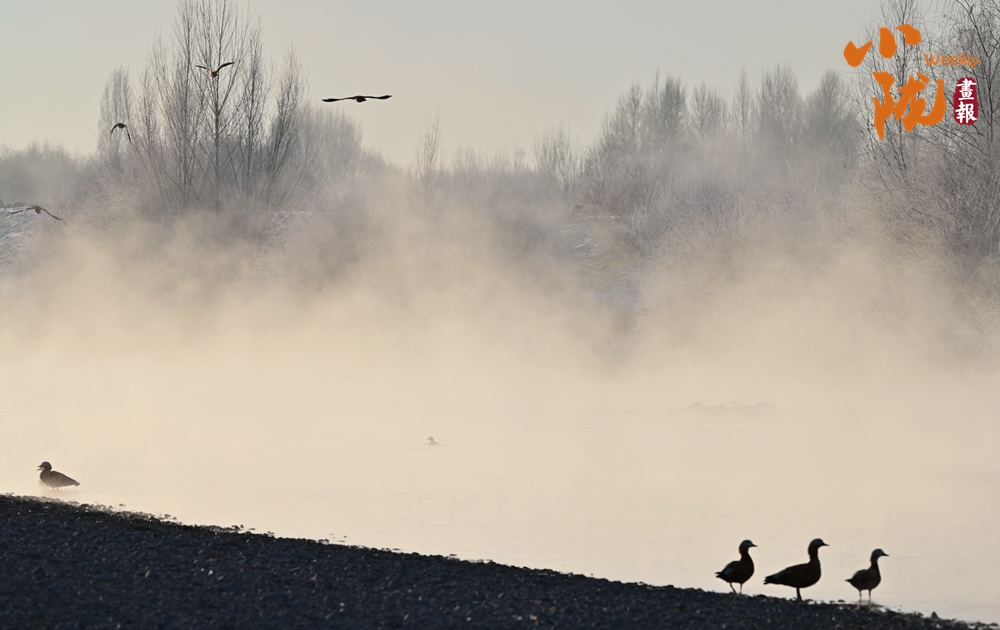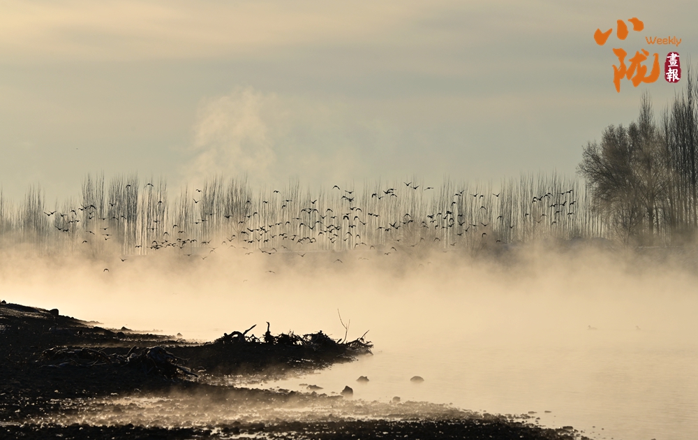 候鳥永遠(yuǎn)是畫里跳動的精靈,它們或游弋,或起舞,是畫中的點點濃墨,聚散之間,畫面靈氣盡現(xiàn)。