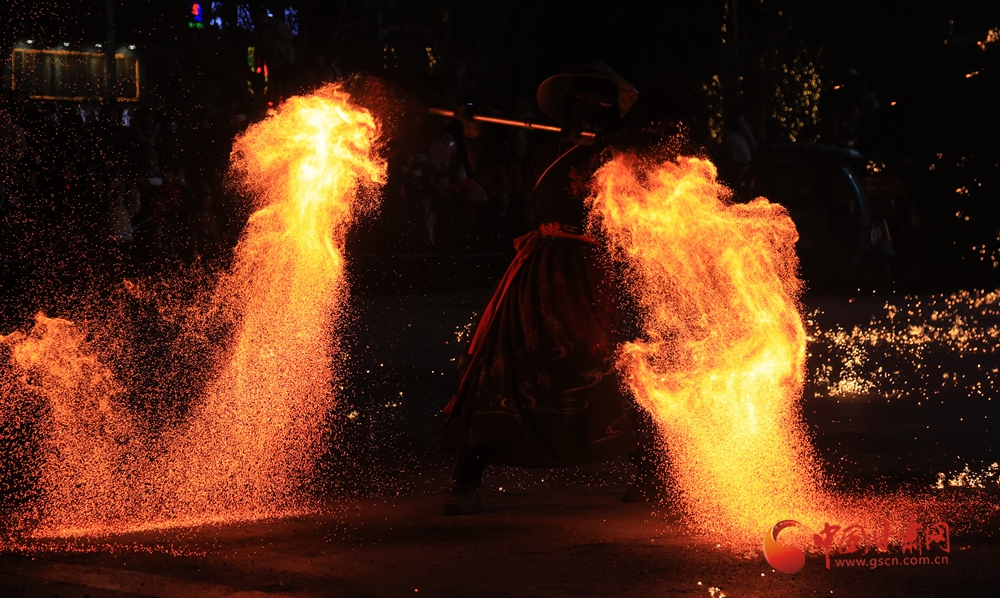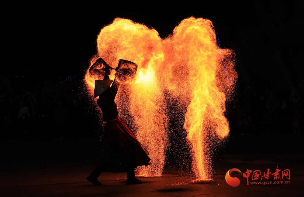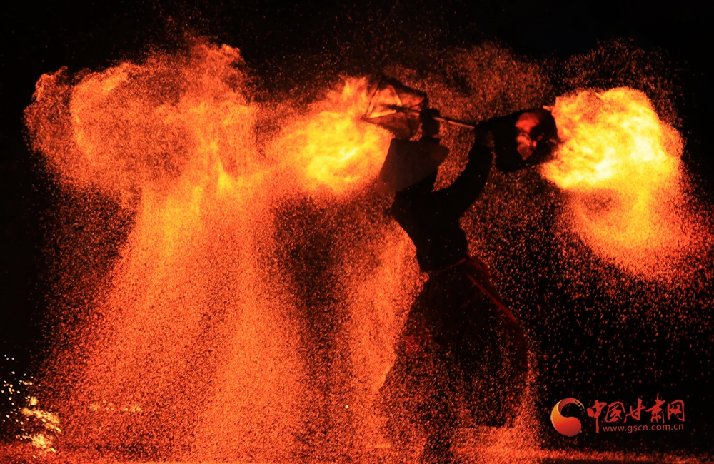 春節(jié)期間,在臨夏永靖劉家峽太極廣場(chǎng)上進(jìn)行的打鐵花和火壺表演吸引了不少觀眾,營(yíng)造了濃濃的節(jié)日氛圍。