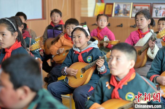 中新社記者近日探訪瑪曲縣寄宿制藏族小學(xué)彈唱社團(tuán)活動,未進(jìn)教室,已聽到室內(nèi)傳出的歡快琴聲和笑聲。