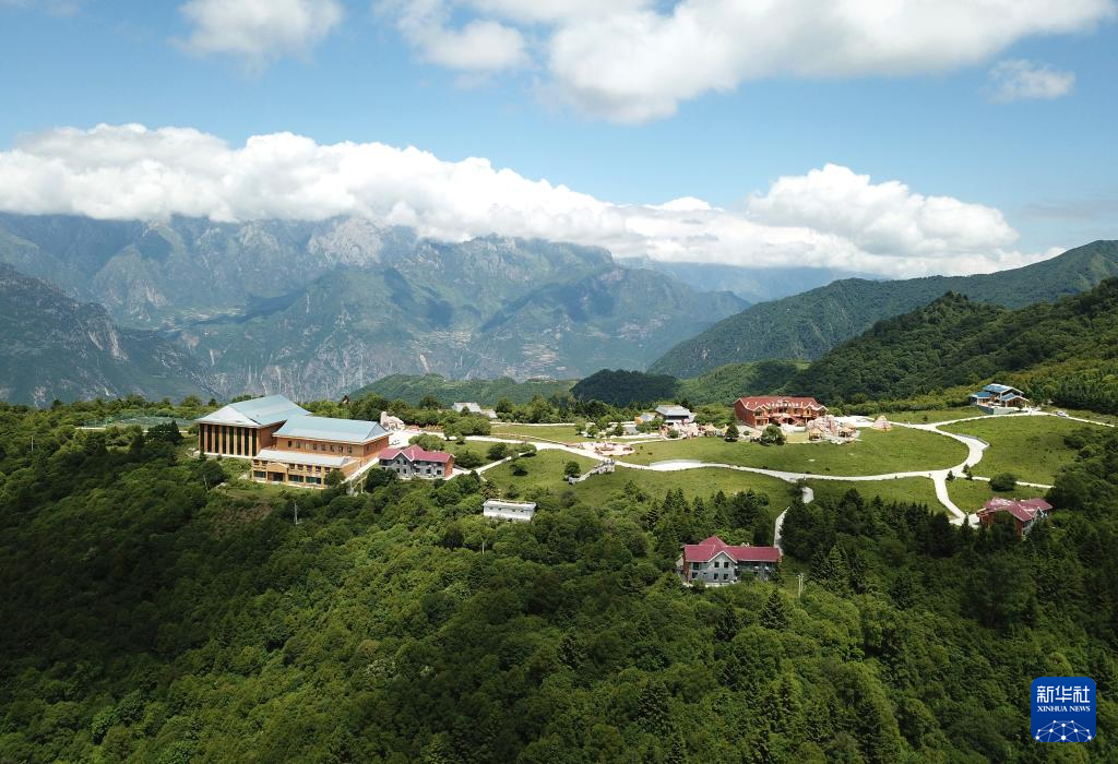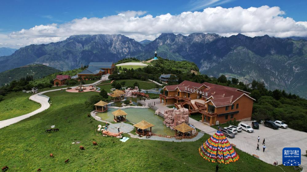 這是7月12日拍攝的舟曲拉尕山一處特色民宿(無人機(jī)照片)。新華社記者 陳斌 攝