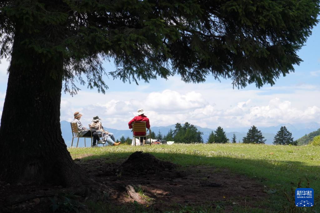 幾位游客在舟曲拉尕山上露營游玩(7月12日攝)。新華社記者 馬寧 攝