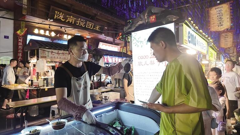 “入駐至今,平均每天能售出700根烤腸,真是來對(duì)了!”新入駐該夜市剛滿一個(gè)月的烤腸商戶老板羅兆劍高興地說,之所以選擇新光夜市,是因?yàn)樗缺A袅颂m州最本真的煙火氣和舌尖記憶,又滿足了現(xiàn)代消費(fèi)者對(duì)品質(zhì)、體驗(yàn)和多元化的需求。此外,在證照辦理、稅費(fèi)優(yōu)惠、基礎(chǔ)設(shè)施配套、宣傳推廣等方面,也為商戶們創(chuàng)造了更便利、更有保障的經(jīng)營環(huán)境。