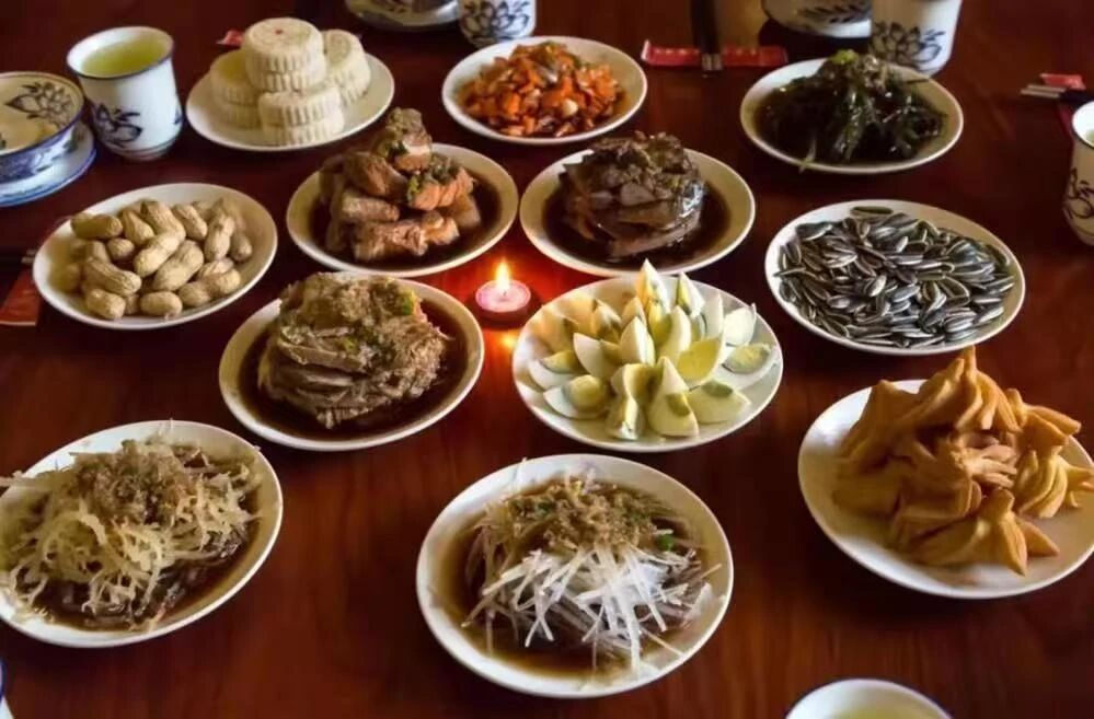 ——“十三花”,寓意胡太后以民為本的執(zhí)政理念;城內(nèi)四個葷菜,寓意人民四季安康、幸福美滿;骨頭碟和懸肉碟,寓意父骨母血、尊老孝親;肝子碟和雞蛋碟,寓意肝膽相照、心心相??;四個水菜碟子水圍城,寓意順風(fēng)順?biāo)?、四方平安;城外瓜籽花生碟,寓意多子多福、多祿多壽;路食和果子,寓意衣豐食足、一路平安;最中間一個大碟全盤為中心,寓意團結(jié)聚力、天下一心。