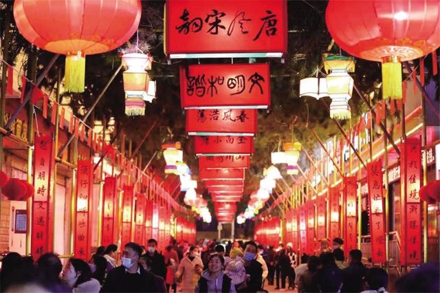 其中,甘南州夏河縣以民間舞與民歌聯(lián)歡的方式迎接春節(jié)的到來,“南木特”藏戲公益性展演活動(dòng)也同步拉開序幕;武都高山戲民間演出活動(dòng)在隴南市武都區(qū)魚龍鎮(zhèn)精彩上演;張掖市民樂縣秦腔展演讓城北民俗文化村的游客們大飽耳福;白銀市先后舉辦了景泰樹皮筆畫作品展、“美在民間”白銀剪紙傳承人作品邀請(qǐng)展;正月十三,定西市安定區(qū)內(nèi)官營鎮(zhèn)一年一度的“凈街”民俗活動(dòng)成功舉行,現(xiàn)場(chǎng)熱鬧非凡;金昌市永昌縣“保護(hù)非遺·傳承民俗·慶祝元宵”為主題的“卍”字燈城民俗文化活動(dòng)于元宵佳節(jié)閃亮登場(chǎng);在蘭州老街穿漢服、賞花燈、游園會(huì),沉浸式體驗(yàn)傳統(tǒng)文化成為新民俗。