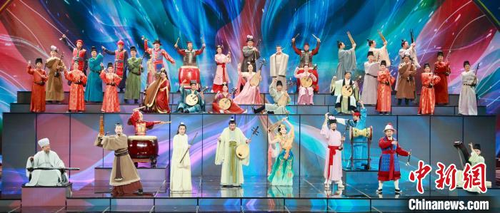 開場節(jié)目《齊天樂》中,以神舟十三號航天員王亞平在空間站奏響經典旋律《茉莉花》為序曲,將中國空間站傳來的太空音樂祝福和晚會現(xiàn)場激昂的民樂演奏巧妙融合。中華文化史上與民樂相伴的十組傳奇人物齊聚一堂,從斗琴到合鳴,演繹了一曲融合琴、簫、笙、阮、鼓、琵琶、箜篌、二胡、嗩吶、羯鼓等十種代表性民族樂器的創(chuàng)意交響。