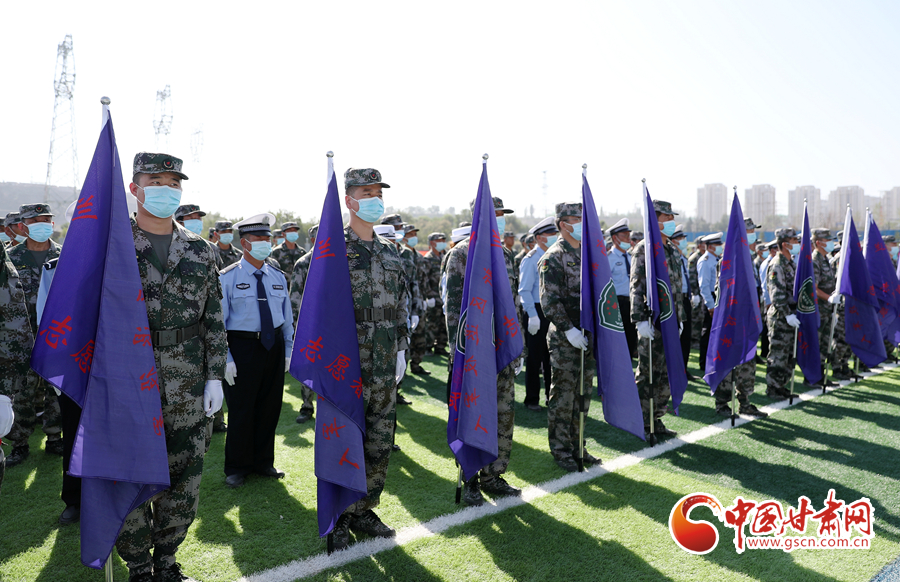 市委常委、政法委書記魏晉文同志為蘭州高新區(qū)“退役軍人志愿者服務(wù)隊(duì)”授旗