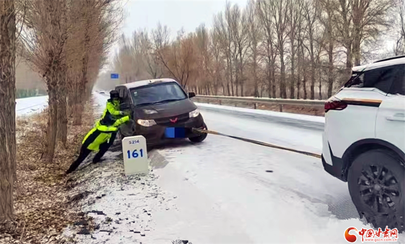 金塔縣公安局交警大隊民輔警救援被困車輛