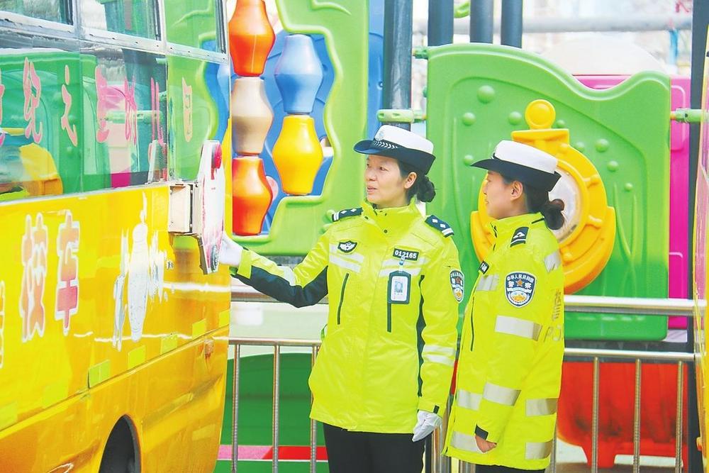 民警在檢查校車安全設(shè)施。2月19日,蘭州市公安局交警支隊(duì)七里河大隊(duì)民警走進(jìn)七里河區(qū)世紀(jì)之星幼兒園,開展校車啟封安全檢查。 新甘肅·甘肅法治報(bào)記者王輝攝