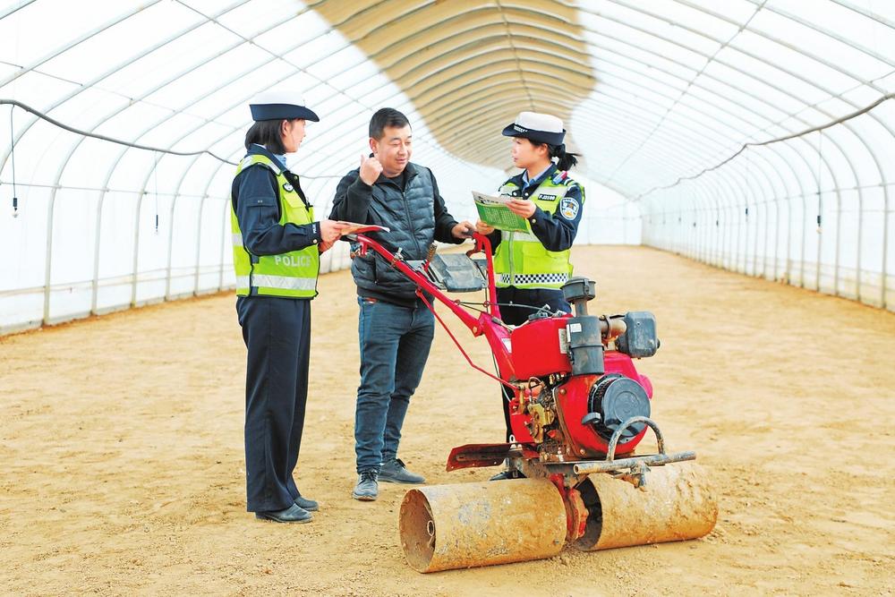 民警向群眾講解交通安全知識。3月6日,定西市公安局安定分局民輔警走進田間地頭,開展護航春耕交通安全宣傳活動,營造安全暢通的道路交通環(huán)境。 新甘肅·甘肅法治報通訊員楊永剛攝