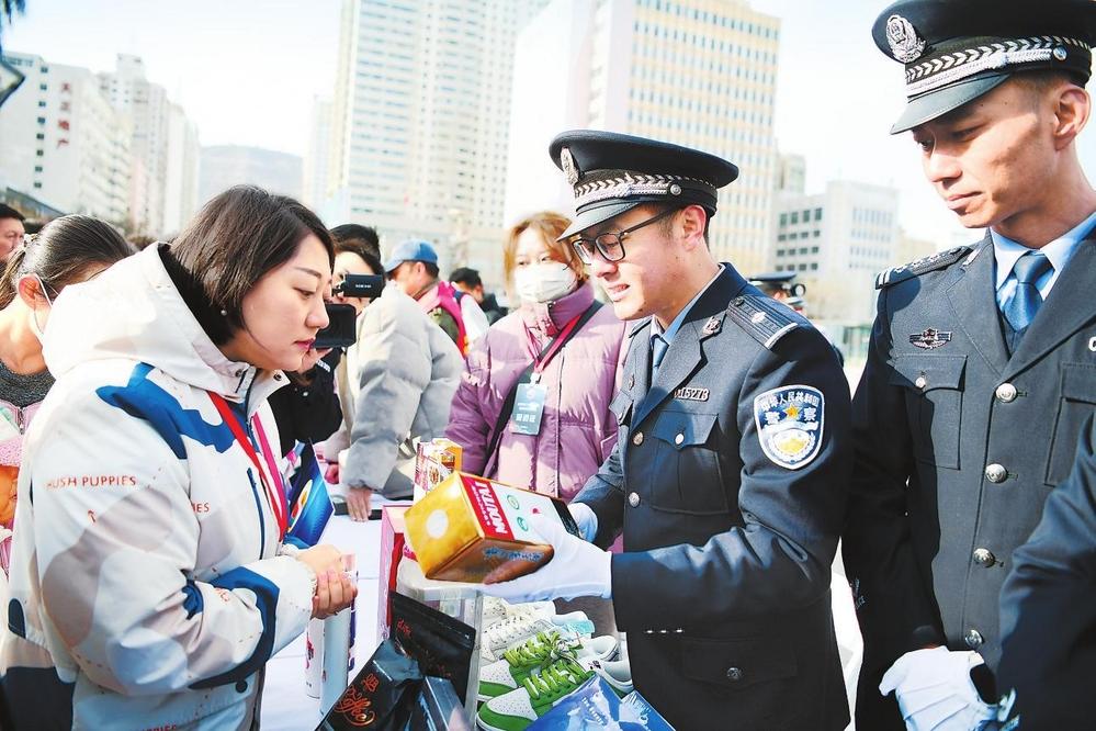 民警向市民普及商品的辨別知識。新甘肅·甘肅法治報記者王輝攝