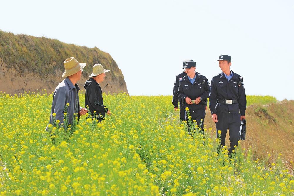 民警田間地頭走訪群眾。5月15日,定西市公安局安定分局組織民輔警開展社情民意大走訪,面對面傾聽群眾呼聲、征求群眾意見,解決實際困難,宣講安全知識,不斷增強人民群眾的獲得感、幸福感、安全感?! ⌒赂拭C·甘肅法治報通訊員楊永剛攝