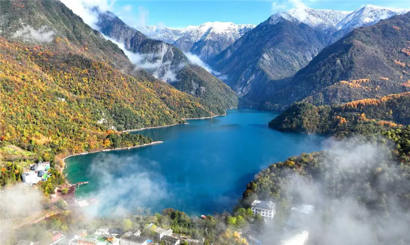 晨光初露,官鵝溝的薄霧尚未散盡,澤蕩湖面倒映著如黛青山。游客們紛紛舉起手機(jī),將這幅山水畫(huà)卷定格,而一支巡邏警隊(duì)的藏藍(lán)身影,也悄然融進(jìn)了這水天一色中。
