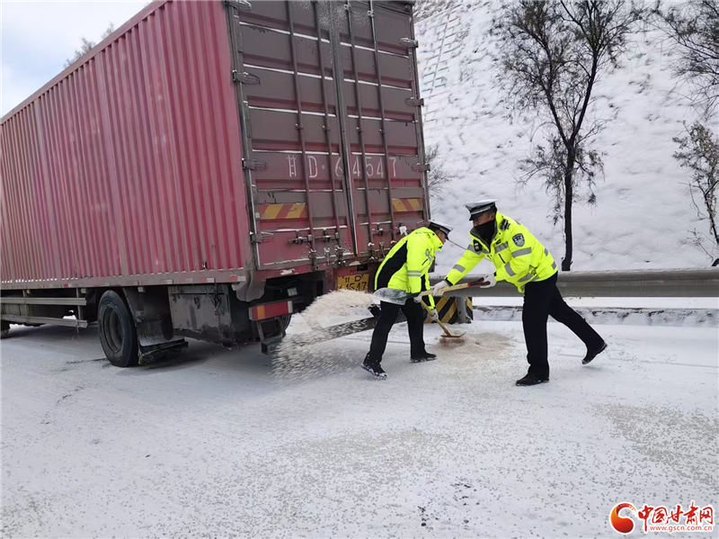 為應(yīng)對(duì)降雪影響,蘭州公安交管部門科學(xué)調(diào)配警力,在城區(qū)主次干道、國(guó)省道沿線及重點(diǎn)積雪結(jié)冰路段布設(shè)執(zhí)勤點(diǎn)位。針對(duì)解放門立交橋等橋梁隧道、長(zhǎng)大下坡關(guān)鍵點(diǎn)位,提前預(yù)置融雪劑,聯(lián)合市政養(yǎng)護(hù)部門開展“機(jī)械除雪+人工清掃”作業(yè),確保重點(diǎn)路段“見底露面”。