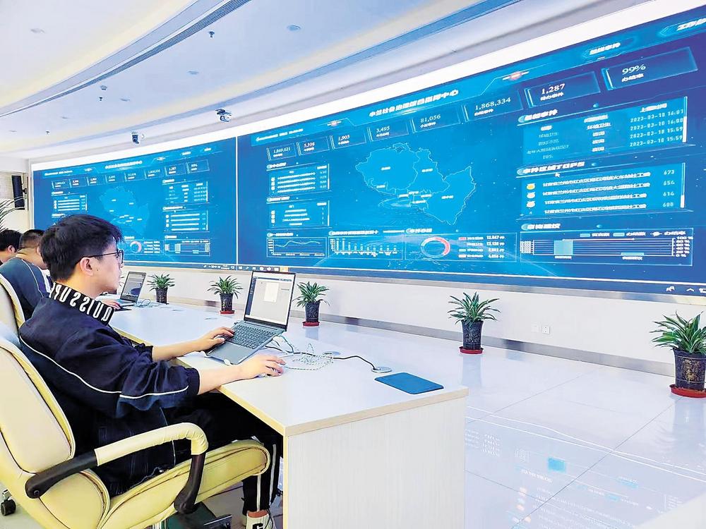 蘭州市社會(huì)治安綜合治理中心工作人員實(shí)時(shí)關(guān)注“民情地圖·小蘭善治”平臺。