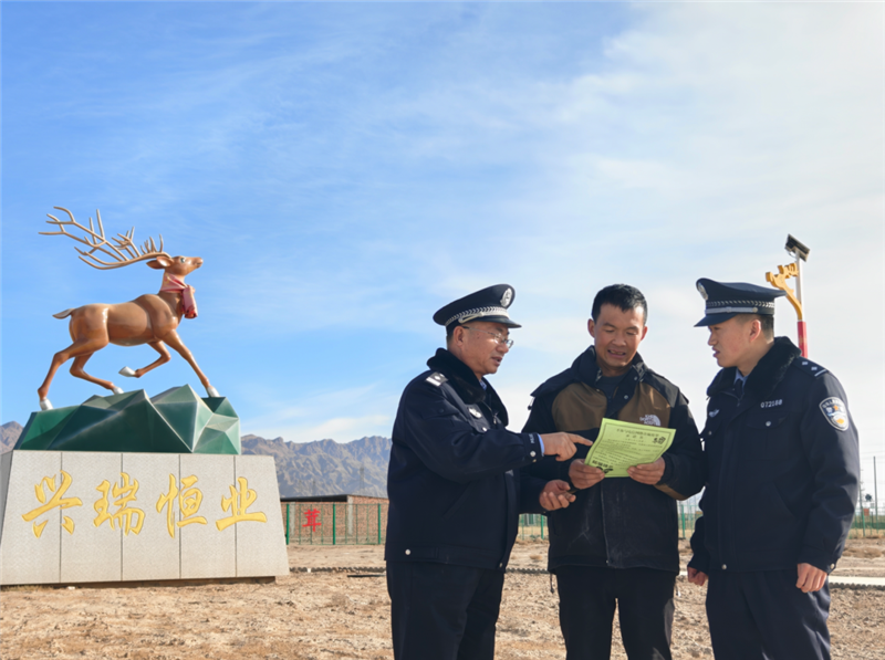 ▲山丹縣公安局清泉派出所民輔警深入轄區(qū)梅花鹿養(yǎng)殖基地,了解冬季梅花鹿養(yǎng)殖情況,開展隱患排查、治安巡防、反詐宣傳、糾紛調(diào)解等護企安商工作。(尚婧 攝)
