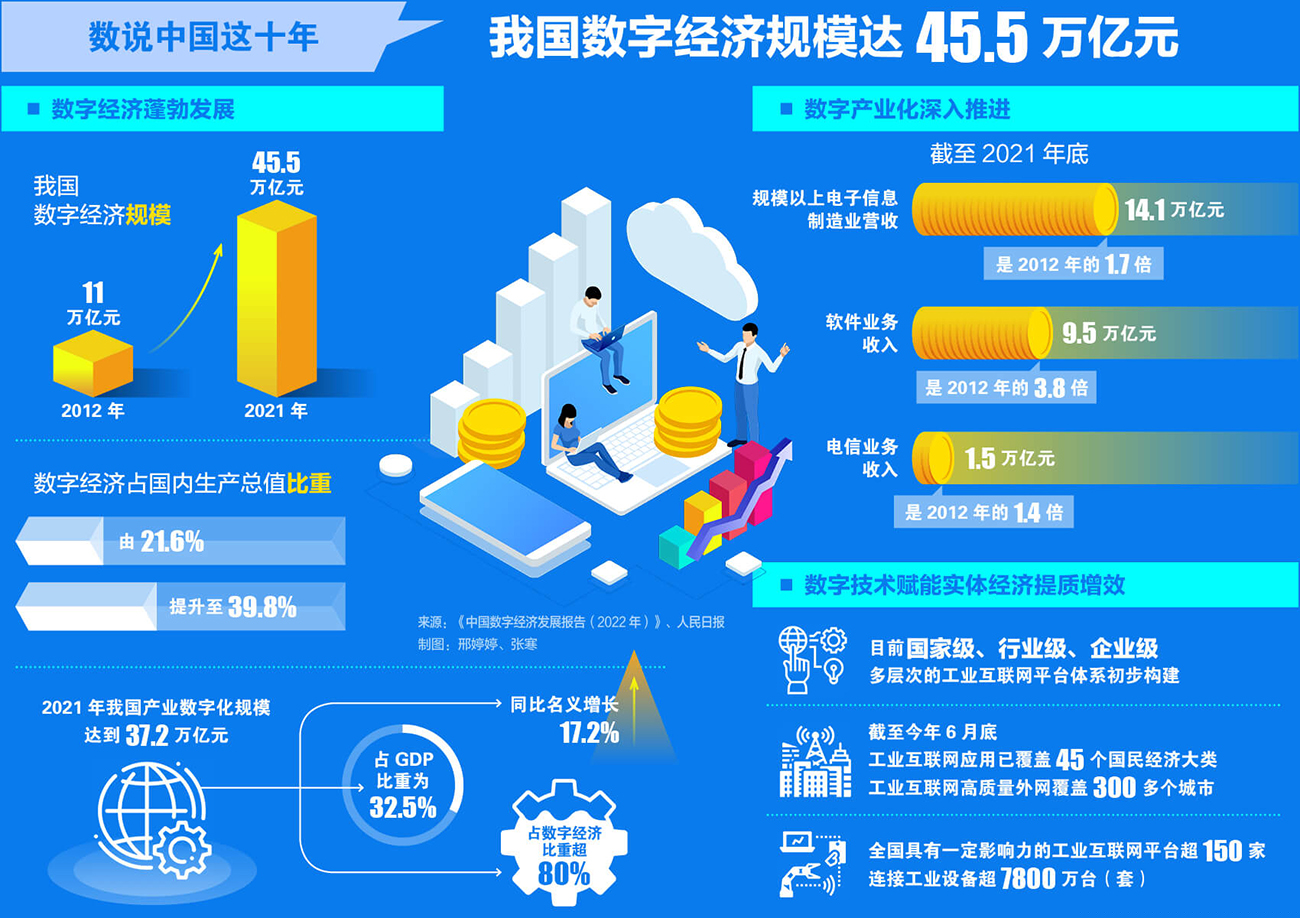 數(shù)說中國這十年丨我國數(shù)字經(jīng)濟(jì)規(guī)模達(dá)45.5萬億元