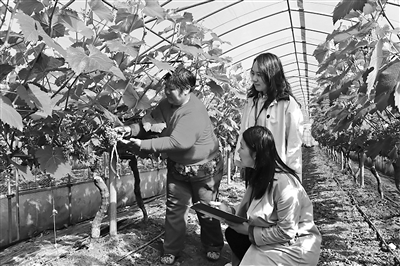 江蘇省東臺市紀(jì)委監(jiān)委開展護航農(nóng)村特色產(chǎn)業(yè)發(fā)展專項監(jiān)督,深入查糾鄉(xiāng)村振興項目資金監(jiān)管和涉農(nóng)補貼發(fā)放等方面存在的問題。圖為該市紀(jì)委監(jiān)委工作人員在葡萄種植大棚走訪了解相關(guān)情況。王茜 攝