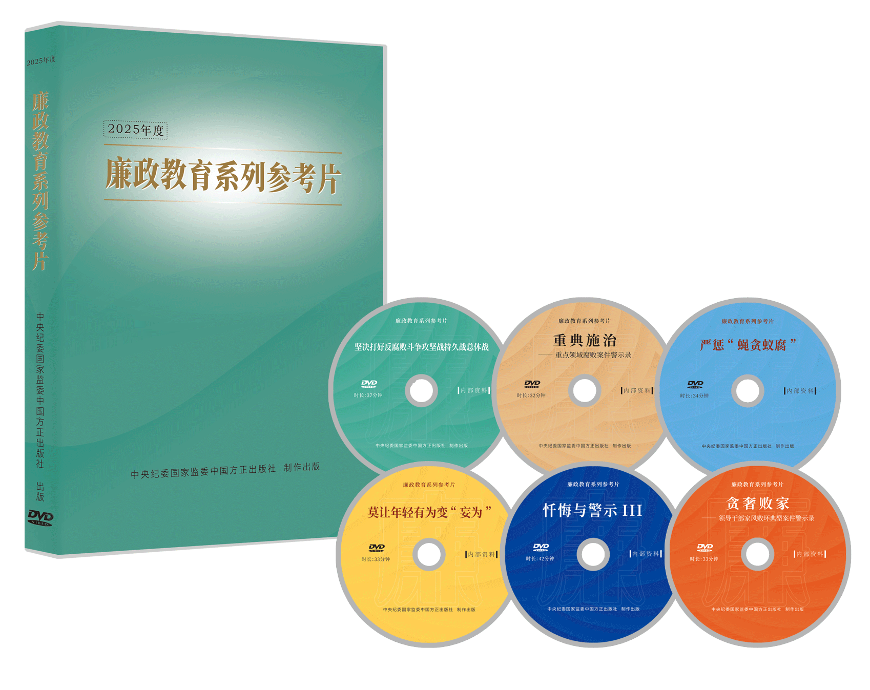 為深入學習貫徹習近平新時代中國特色社會主義思想,貫徹落實黨的二十屆三中全會、二十屆中央紀委四次全會精神,加強黨員干部紀律教育、警示教育,加強新時代廉潔文化建設(shè),一體推進不敢腐、不能腐、不想腐,中國方正出版社組織制作了2025年度《廉政教育系列參考片》,于近日出版。