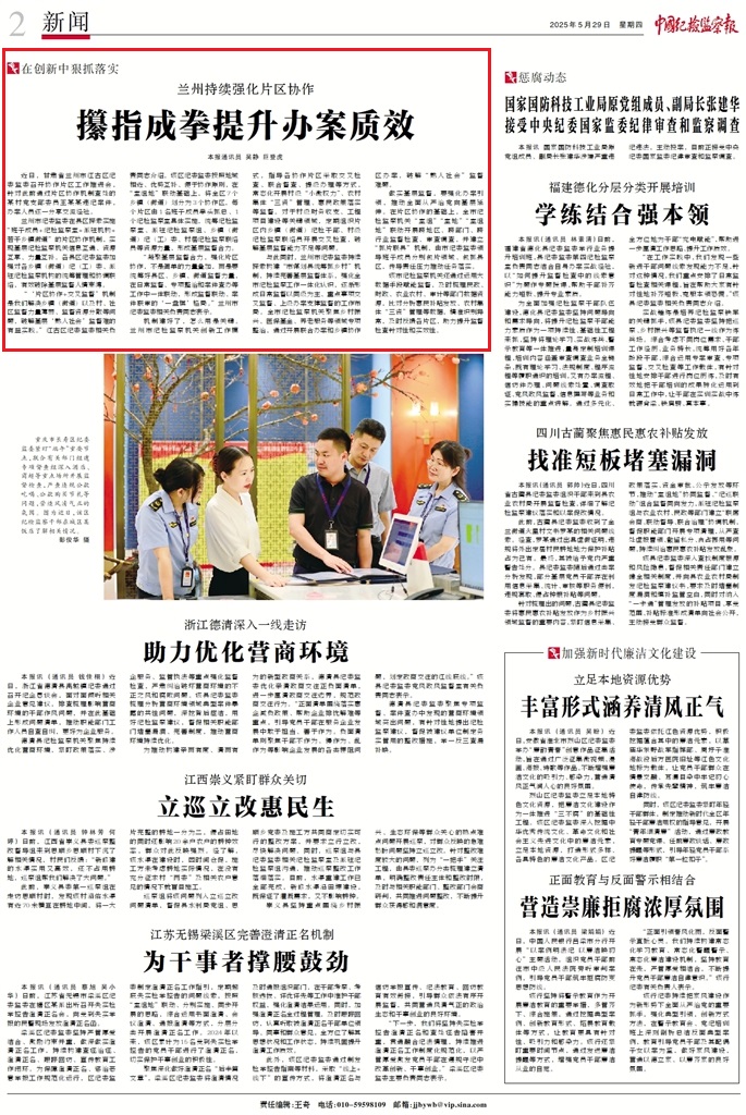 “凝聚基層監(jiān)督合力,強(qiáng)化片區(qū)協(xié)作,不是簡單的力量疊加,而是要統(tǒng)籌好縣區(qū)、鄉(xiāng)鎮(zhèn)、街道監(jiān)督力量,在日常監(jiān)督、專項(xiàng)整治和案件查辦等工作中一體聯(lián)動(dòng),形成監(jiān)督聯(lián)動(dòng)、案件聯(lián)審的‘一盤棋’格局。”蘭州市紀(jì)委監(jiān)委相關(guān)負(fù)責(zé)同志表示。
