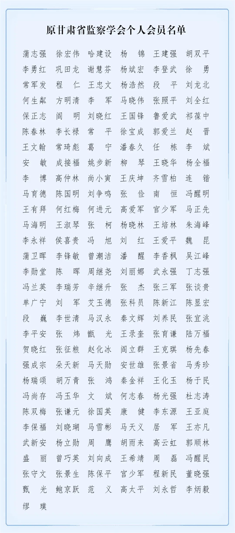原甘肅省監(jiān)察學會已于2024年5月更名為“甘肅省紀檢監(jiān)察協(xié)會”。為推動更名換屆后的甘肅省紀檢監(jiān)察協(xié)會輕裝上陣,更好服務紀檢監(jiān)察工作大局,按照協(xié)會第五屆理事會第二次會議精神,決定對原甘肅省監(jiān)察學會個人會員和單位會員進行清理,現(xiàn)就有關事項公告如下: