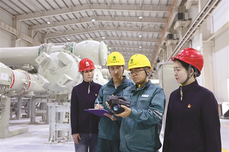 國(guó)網(wǎng)寧夏電力有限公司紀(jì)委以有力監(jiān)督推動(dòng)“寧電入湘”特高壓線路工程投運(yùn)后各項(xiàng)工作平穩(wěn)有序推進(jìn)。圖為近日,該公司紀(jì)委工作人員在國(guó)網(wǎng)寧夏超高壓公司中寧換流站開展現(xiàn)場(chǎng)監(jiān)督檢查。王天鵬 攝