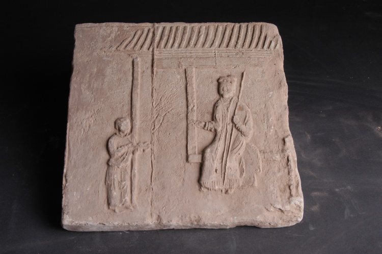宋代??v30.2厘米,橫30.7厘米,厚3厘米。征集。磚呈長(zhǎng)方形,青灰色,通過(guò)模印工藝展示了屋檐下一婦人坐于窗臺(tái)前,給一端物的幼子訓(xùn)話(huà)的場(chǎng)景,是研究宋代社會(huì)生活、家庭倫理及畫(huà)像磚藝術(shù)的珍貴實(shí)物資料。