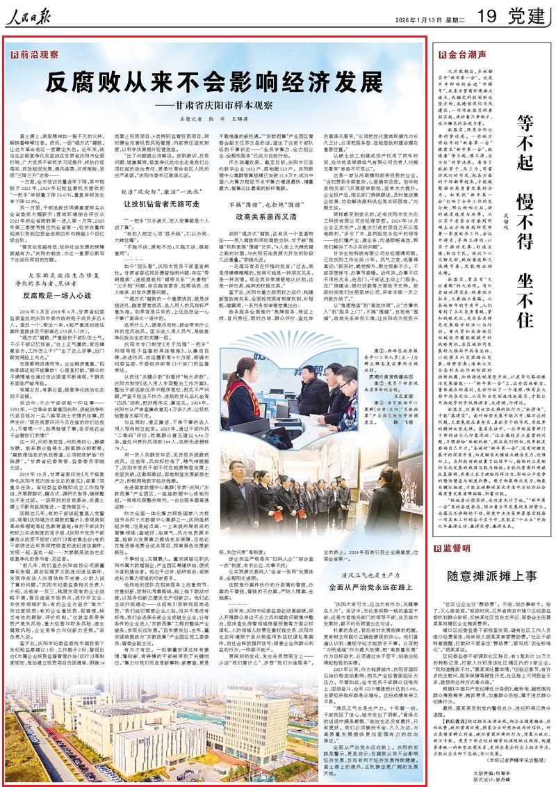 全面從嚴(yán)治黨永遠(yuǎn)在路上。慶陽的實踐是警示,更是啟示:反腐敗從來不會影響經(jīng)濟(jì)發(fā)展,反而有利于經(jīng)濟(jì)發(fā)展持續(xù)健康。黃土塬上的清風(fēng),正吹拂出更廣闊的發(fā)展天地。(記者 張洋 王錦濤)