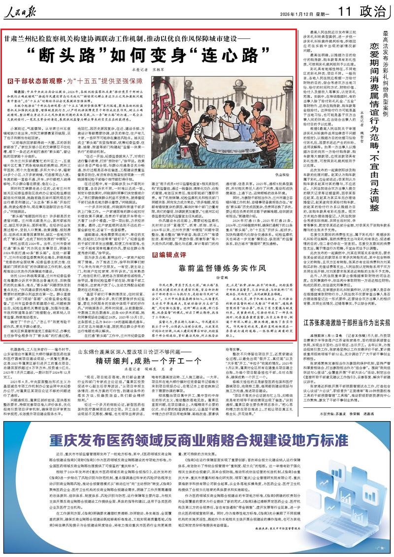 本版今起推出“干部狀態(tài)新觀察•為‘十五五’提供堅強保障”系列報道,聚焦各地紀檢監(jiān)察機關(guān)加強執(zhí)紀監(jiān)督,增強制度執(zhí)行力,以嚴明紀律保障黨員干部形成優(yōu)良作風、樹立正確政績觀、整治群眾身邊不正之風和腐敗問題的具體實踐,從一條“斷頭路”的打通、一筆企業(yè)欠款的償付、一筆民生資金的清退,展現(xiàn)執(zhí)紀監(jiān)督為群眾帶來的實實在在的獲得感。