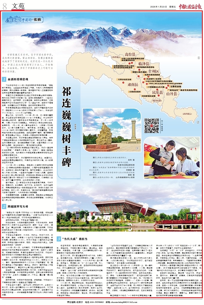 甘肅張掖又名甘州,位于河西走廊中段,是絲綢之路重鎮(zhèn),霍去病西征、張騫出塞都在此地留下了深深的足跡。這里還是一片紅色沃土,中國(guó)工農(nóng)紅軍西路軍2萬(wàn)余人,不怕?tīng)奚⒃⊙獖^戰(zhàn),書寫了中國(guó)革命史上可歌可泣的壯麗詩(shī)篇。