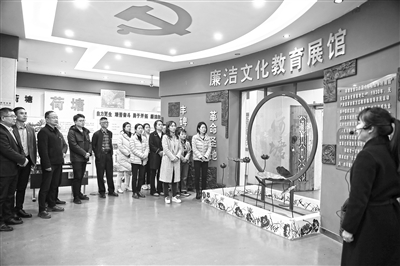 江西省景德鎮(zhèn)市紀(jì)委監(jiān)委充分挖掘本土廉潔文化資源,推動建立生動的廉潔教育實體課堂,著力鍛造忠誠干凈擔(dān)當(dāng)、敢于善于斗爭的紀(jì)檢監(jiān)察鐵軍。圖為該市紀(jì)委監(jiān)委干部參觀景德鎮(zhèn)荷塘廉潔文化教育基地,接受廉政教育。歐陽晨君 攝