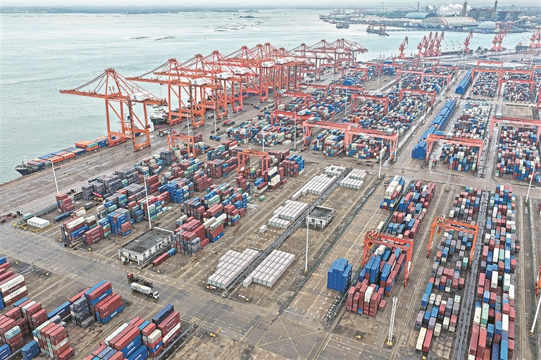 時(shí)下,廣西北部灣港欽州港區(qū)碼頭橋吊、龍門吊等自動(dòng)化設(shè)備有序運(yùn)轉(zhuǎn),車輛來往穿梭,港口貨運(yùn)呈現(xiàn)一派繁忙景象。圖為3月4日拍攝的廣西北部灣港欽州港區(qū)碼頭。新華社記者 周華 攝