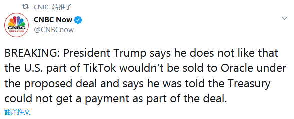 【環(huán)球網(wǎng)快訊】據(jù)CNBC剛剛消息,美國(guó)總統(tǒng)特朗普在16日的白宮新聞?dòng)浾邥?huì)上稱,他不喜歡目前甲骨文與TikTok目前擬定的合作協(xié)議,原因是TikTok的美國(guó)業(yè)務(wù)不會(huì)出售給甲骨文,而且他還被告知,美國(guó)財(cái)政部將無(wú)法從這次交易中拿到補(bǔ)償。