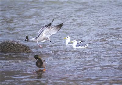 海鷗爭魚。張福昌2019年12月中旬攝于蘭州城關黃河大橋。