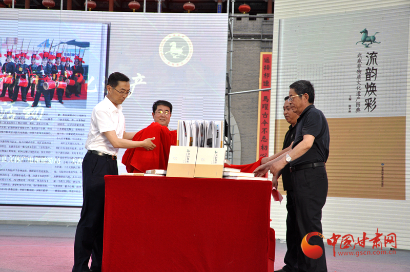 活動中,《流韻煥彩——武威非物質文化遺產圖典》揭幕并首發(fā)?!读黜崯ú?mdash;—武威非物質文化遺產圖典》是由武威市文體廣電和旅游局組織編寫,讀者出版集團旗下的甘肅科學技術出版社出版,先后歷時5載。該圖典將散落在武威廣袤大地上的璀璨珍珠串連起來,將牽動著記憶深處的濃濃情思匯聚起來,展示了一個歷史武威、一個文化武威、一個多彩武威,是解讀武威的最好途徑。該圖典共收錄了84個非遺項目,81位項目代表性傳承人,用2000多張圖片和文字介紹,全方位、多角度展示了武威市非遺項目的獨特性、活態(tài)性、傳承性、流變性、綜合性、民族性、地域性等基本特點。該圖典最大的亮點,就是在國家級、省級項目中融入互聯網思維,加入二維碼視頻鏈接,對項目進行動態(tài)視頻展示,讓《圖典》不僅可看、可讀,而且能說會動,能唱會跳,實現了非遺項目活態(tài)傳承的創(chuàng)新。