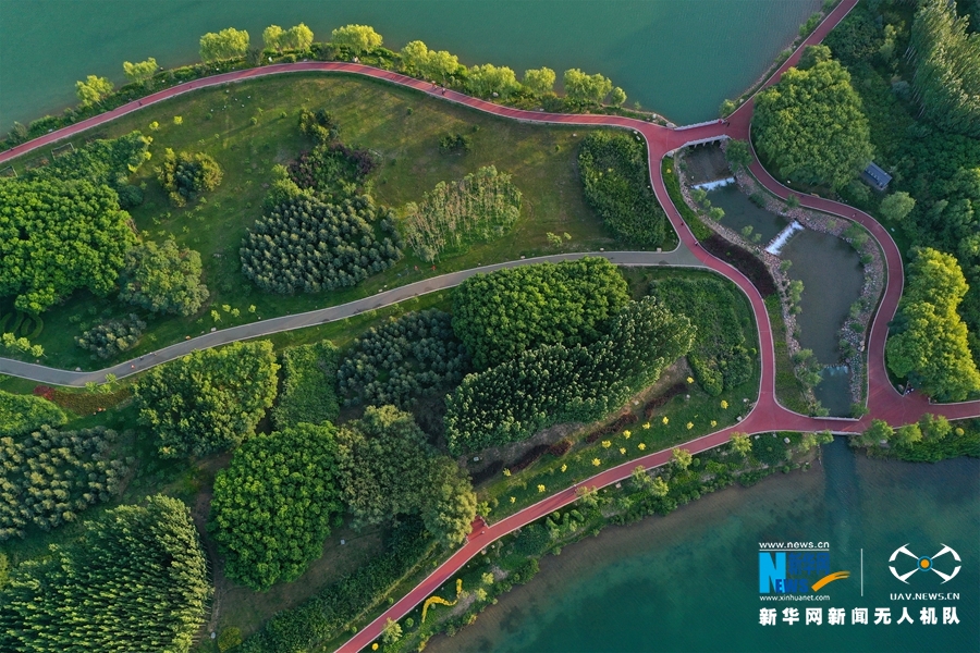 這是近日航拍的甘肅省張掖市蘆水灣生態(tài)景區(qū)。蘆水灣生態(tài)景區(qū)位于張掖市濱河新區(qū),湖水湛藍(lán),草木翠綠,景色宜人,宛如一顆鑲嵌在河西走廊的“寶石”。新華網(wǎng)發(fā)(吳學(xué)珍 攝)