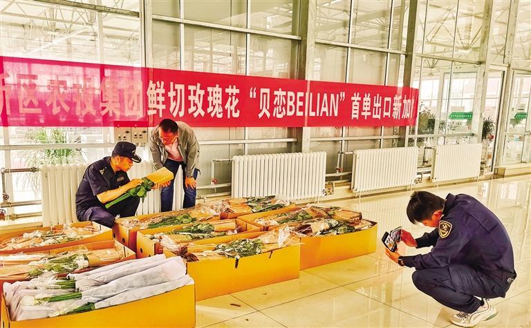 海關(guān)工作人員檢驗(yàn)檢疫新區(qū)鮮切玫瑰花 張建平 攝