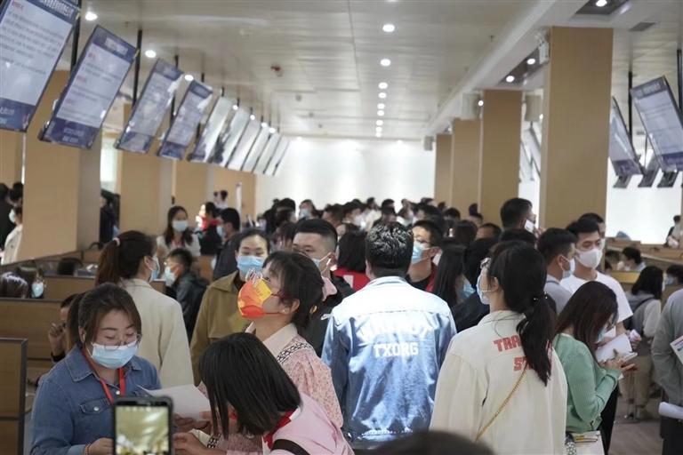 招聘會(huì)現(xiàn)場(chǎng)人潮涌動(dòng) 蘭州日?qǐng)?bào)社全媒體記者 陳夢(mèng)圓 攝