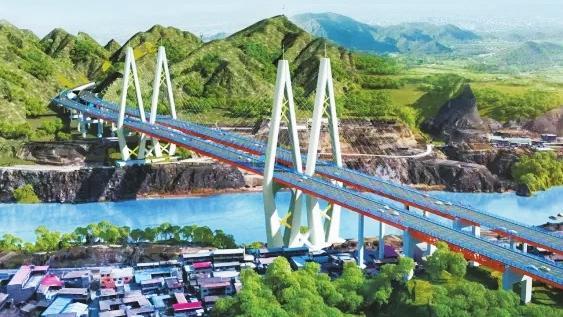 大橋主跨328米,雙向八車道,為半漂浮體系組合梁斜拉橋。橋塔采用分離式雙鉆石四索面“雙子星”新型結(jié)構(gòu),北塔高133米,南塔高152米,是國內(nèi)Ⅷ度以上地震烈度區(qū)最大跨度分幅聯(lián)塔斜拉橋。
