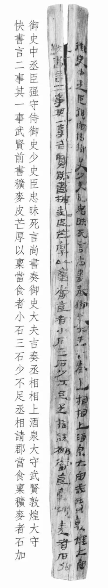 另?yè)?jù)張德芳先生考證,此簡(jiǎn)所言史實(shí)或與漢宣帝神爵年間對(duì)羌作戰(zhàn)有關(guān)。漢宣帝神爵元年(前61)西羌作亂,辛武賢被任命為破羌將軍,與敦煌太守快等發(fā)兵配合后將軍趙充國(guó)對(duì)羌作戰(zhàn),神爵二年(前60)羌事結(jié)束后辛武賢赴任酒泉太守。簡(jiǎn)文中稱(chēng)辛武賢為“酒泉太守”,或許是神爵二年(前60)羌事結(jié)束后,辛武賢在面對(duì)平定西羌戰(zhàn)爭(zhēng)過(guò)程中發(fā)現(xiàn)的一些弊端諸如糧食發(fā)放不足數(shù)等問(wèn)題向朝廷提出改善的建議。