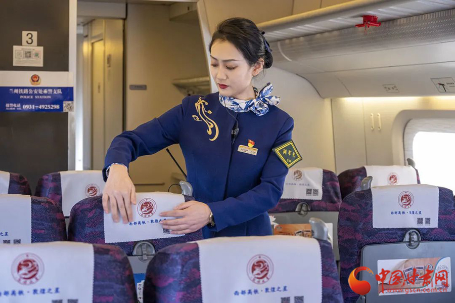中國甘肅網(wǎng)12月27日訊 隨著聯(lián)調(diào)聯(lián)試、運(yùn)行試驗(yàn)等各個(gè)關(guān)鍵節(jié)點(diǎn)順利完成,銀蘭高鐵中蘭段已進(jìn)入開通倒計(jì)時(shí),銀蘭高鐵乘務(wù)團(tuán)隊(duì)也驚艷亮相。