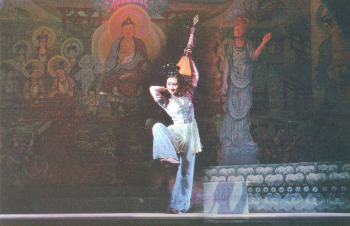 1980年,高金榮編纂了《敦煌舞教學(xué)大綱》,并于當(dāng)年招收了第一屆敦煌舞班學(xué)生。教學(xué)實(shí)踐中,她開創(chuàng)了包括呼吸、手姿、手臂、單腳形態(tài)和琵琶道具組合在內(nèi)的舞姿訓(xùn)練課,編導(dǎo)了《敦煌夢(mèng)幻》《極樂(lè)敦煌》等組舞以及教學(xué)劇目《千手觀音》《妙音反彈》《大飛天》《歡騰伎樂(lè)》《莫高女神》等,再一次“活化”了敦煌壁畫,形成了完備的敦煌舞教學(xué)體系。