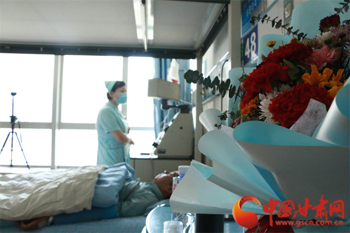 甘肅省紅十字會黨組書記、專職副會長楊芳勝為甘肅省第54例造血干細(xì)胞捐獻(xiàn)者龔先生頒發(fā)“博愛金獎”和榮譽(yù)證書