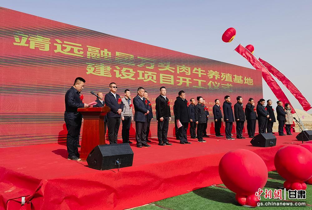 4月8日,靖遠(yuǎn)融晟萬(wàn)頭肉牛養(yǎng)殖基地建設(shè)項(xiàng)目開(kāi)工儀式于甘肅省白銀市靖遠(yuǎn)縣舉行。劉玉桃攝