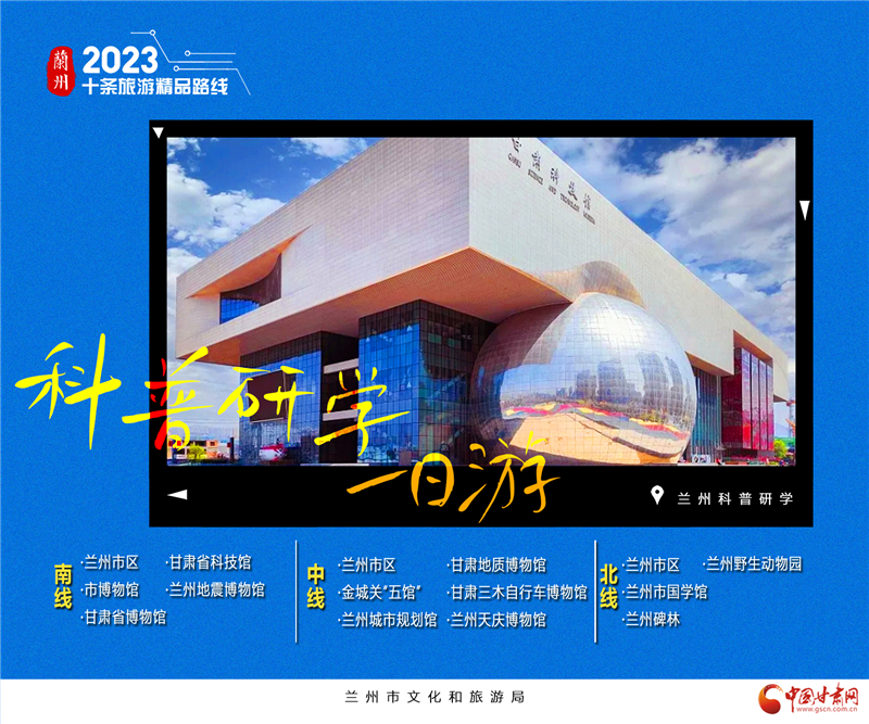 6.蘭州科普研學(xué)1日游。蘭州博物館有很多,可謂是品類齊全。綜合類博物館如省博、市博自不用說,中國旅游標(biāo)志“馬踏飛燕”原件陳列真的不想去看看?各類專門博物館也是非常齊全,秦腔博物館、黃河橋梁博物館、城市規(guī)劃館、自行車博物館、地震博物館等……“蘭州科普研學(xué)1日游”三條線,分別為南線、中線和北線。