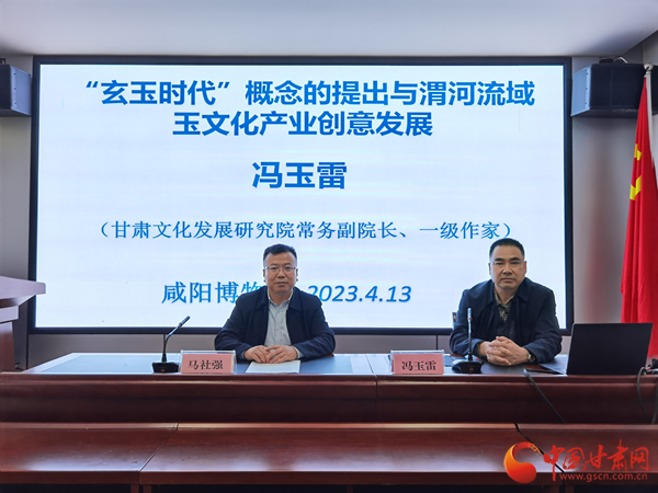 中國甘肅網(wǎng)4月13日訊 為進一步促進博物館學術(shù)研究交流創(chuàng)新,激發(fā)博物館發(fā)展活力,持續(xù)推動博物館高質(zhì)量發(fā)展,陜西咸陽博物院于4月13日下午3點舉辦第二期“咸博大講堂”專題講座,甘肅文化發(fā)展研究院常務副院長、一級作家馮玉雷作了題為《“玄玉時代”概念的提出與渭河流域玉文化產(chǎn)業(yè)創(chuàng)意發(fā)展》的學術(shù)報告。咸陽博物院院長馬社強主持講座。