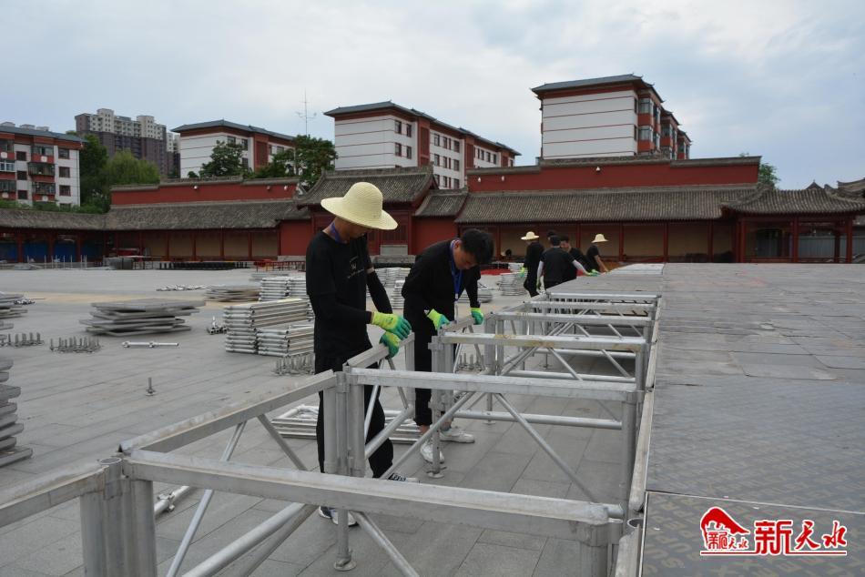 新天水訊【記者何慧娟 張彬霞】2023(癸卯)年公祭中華人文始祖伏羲大典將于6月22日舉行。日前,記者來到伏羲廟廣場看到,公祭伏羲大典文化豐碑矗立在藍(lán)天白云下,看起來雄渾壯麗,主舞臺(tái)搭建,旗桿、旗墩翻新等工作正有序開展,施工現(xiàn)場一派繁忙景象。