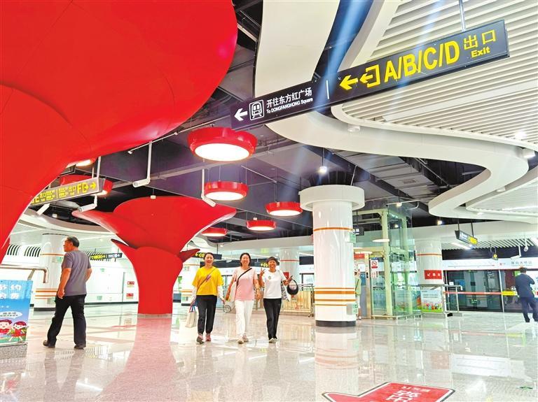 “我住在附近時刻關(guān)注著工程進展,圍擋板拆除后,今天近距離接觸站口還是第一次。”在雁白大橋站A口,關(guān)注開通試運營儀式的李阿姨抱著小孫子早早就來到地鐵站,李阿姨準備當天上午地鐵開通時,乘坐首趟列車,由雁白大橋到東方紅廣場感受地鐵2號線一期全程的快速與舒適。